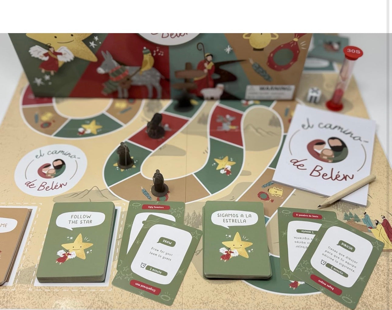 Juego familiar: El Camino de Belén es un juego de mesa con temática navideña, perfecto para reuniones familiares y celebraciones durante las fiestas.