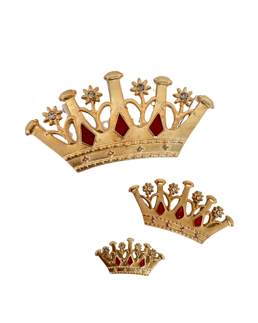 Beautiful decorative crown for the image of Our Lady of Schoenstatt, symbolizing love, devotion, and recognition of her spiritual queenship. Its elegant gold-tone design is enhanced with red stones and zircon accents, adding brilliance and reverence to the image.