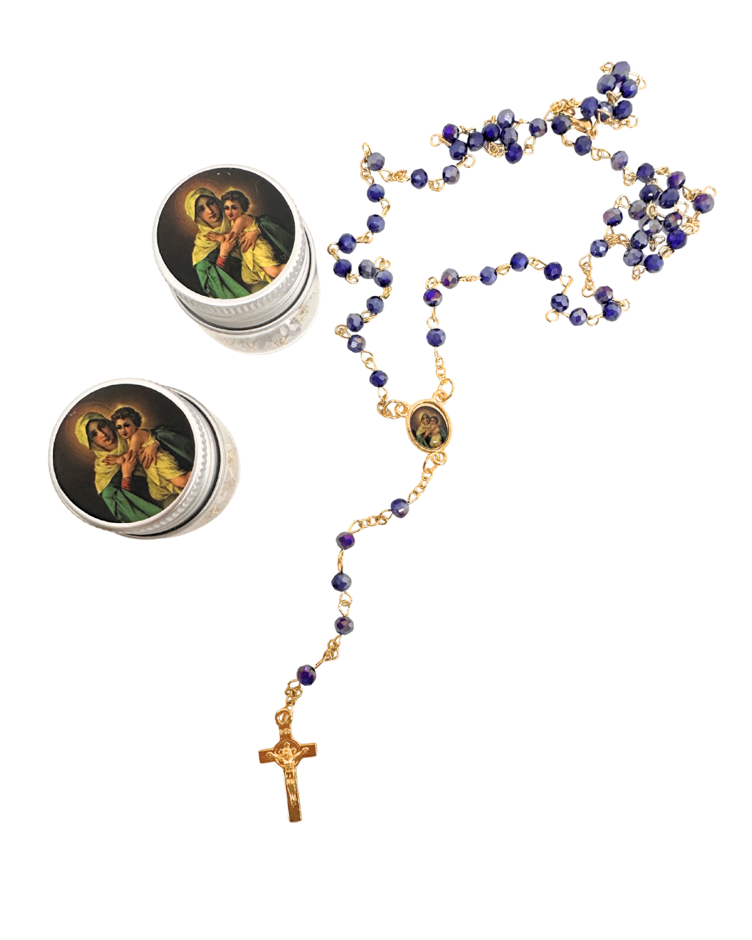 Hermoso rosario con la imagen de la Virgen de Schoenstatt, ideal para acompañarte en la oración diaria o regalar en una ocasión especial. Su diseño elegante combina cuentas delicadas con detalles en dorado, transmitiendo fe y devoción en cada detalle.